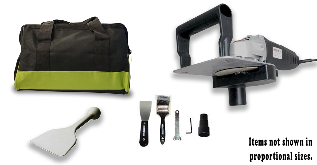 • Polycarbonate Wipe-down tool, 2” Putty Knife, Allen Key and Wrench for Diamond Cutting Wheel Changeout